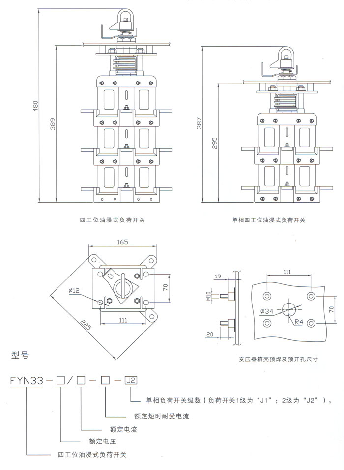 FYN33-12型油浸式四工位负荷开关是根据组合式变压器内空间狭小、电网负载能力要求不断提高的特定环境下而专门设计的超小负荷开关,它以变压器油为绝缘和灭弧介质,弹簧储能、三相联动,适用于10KV环网或双电源线路的配电系统。 | ||