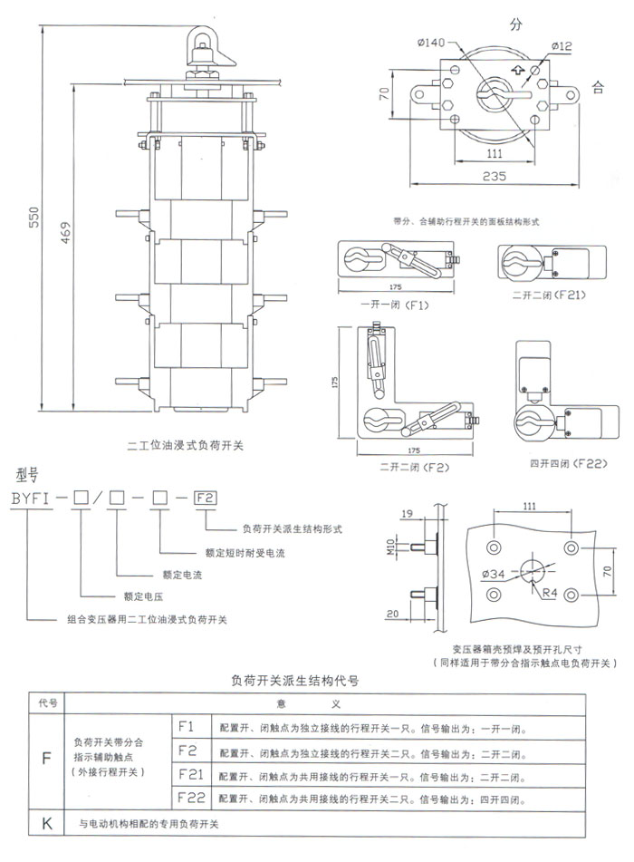 BYFI—40.5型油浸式二位置负荷开关适用于额定电压为35kV、额定频率为50HZ的组合式变压器。是本公司为配合组合式变压器电压升级而设计制造的高绝缘等级负荷开关,其安装尺寸与10kV油浸式负荷开关完全—致。开关为二位置结构,以变压器油作为绝缘和灭弧介质,弹簧储能、三相联动,根据电网线路的不同需要,通过负荷开关不同的配置,可作为组合式变压器的终端控制装置或用三台负荷开关组成环网型控制装置。 开关具有分断和关合两个位置,操作转动角度为90°,开关的动触头采用双触桥浮动夹板式,接触可靠电阻小,通流能力强,静触头采用固定式,使开关的安装更加方便和可靠,独特的结构设计极大提高了触头系统在故障情况下的抵抗能力。 |